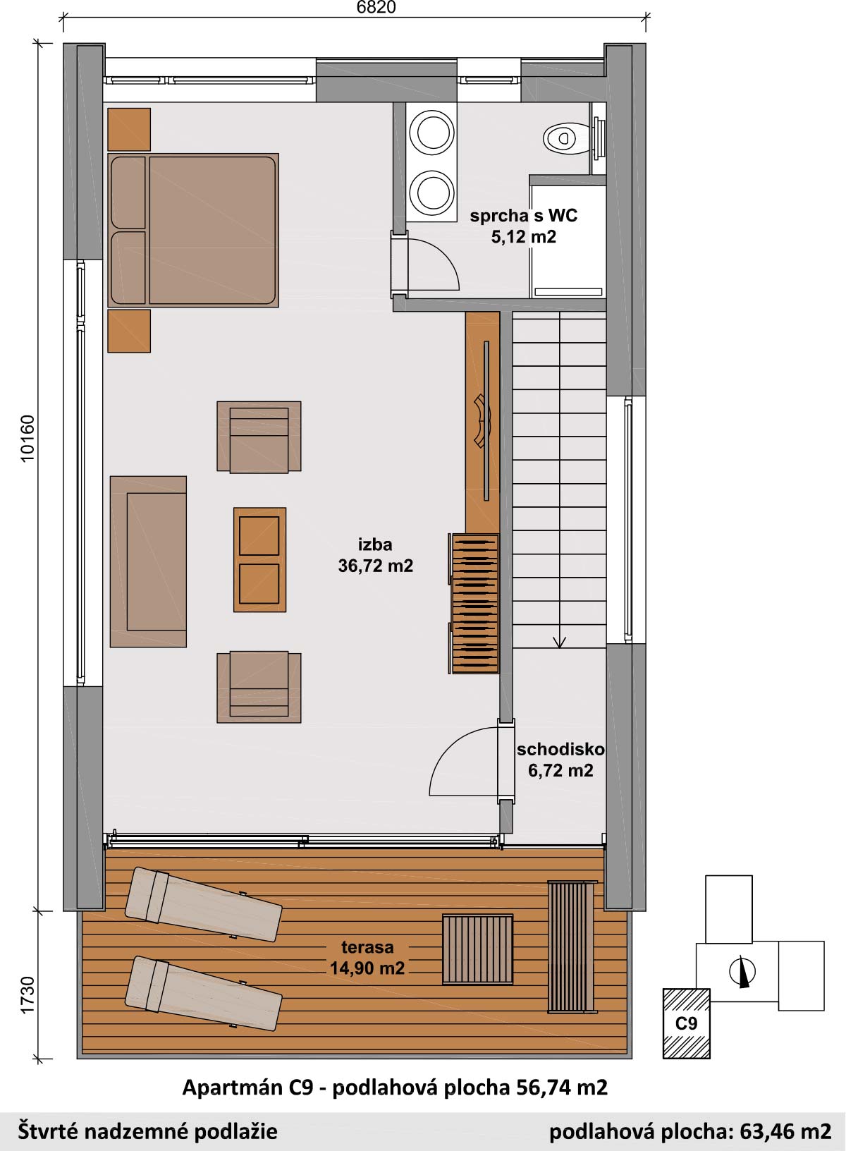 BIZNIS chalet „C“ je navrhnutý v rekreačnej lokalite, v ktorej prevládajú chalety typu „A“ a typu „B“. Pre zachovanie architektonického a urbanistického vzhľadu danej lokality apartmánový dom „C“ pozostáva z troch chaletov typu „A“, ktoré sú v strednej časti vzájomne prepojené prízemnou časťou so spoločenskou miestnosťou. BIZNIS chalet dopĺňajú vonkajšie terasy, parkovacie plochy. Samotné výškové osadenie jednotlivých chaletov typu „A“ je prispôsobené danému terénu pozemku, pričom objekt je smerom do zadnej časti čiastočne zapustený do terénu. V rámci danej lokality je penzión situovaný v tesnej blízkosti lyžiarskej zjazdovky „Malinô Brdo“ s priamy vstupom na lyžiarsku zjazdovku.